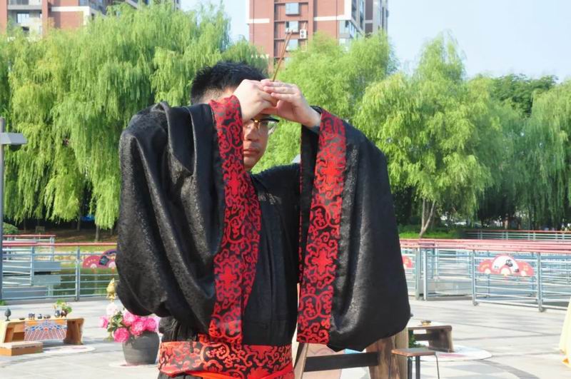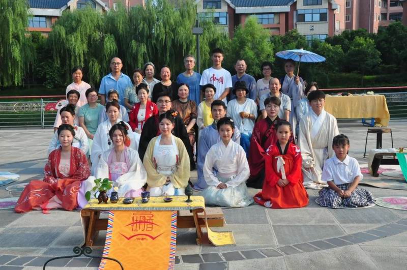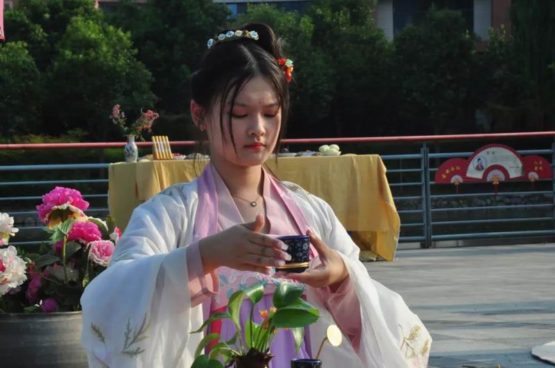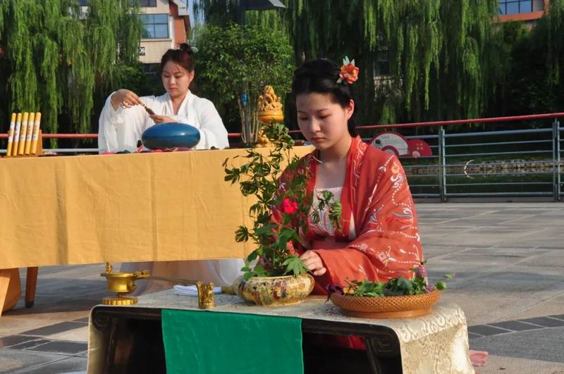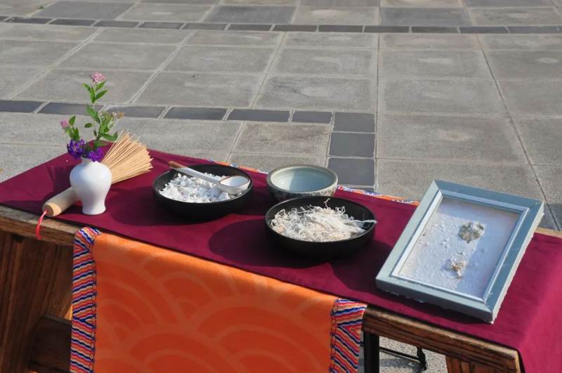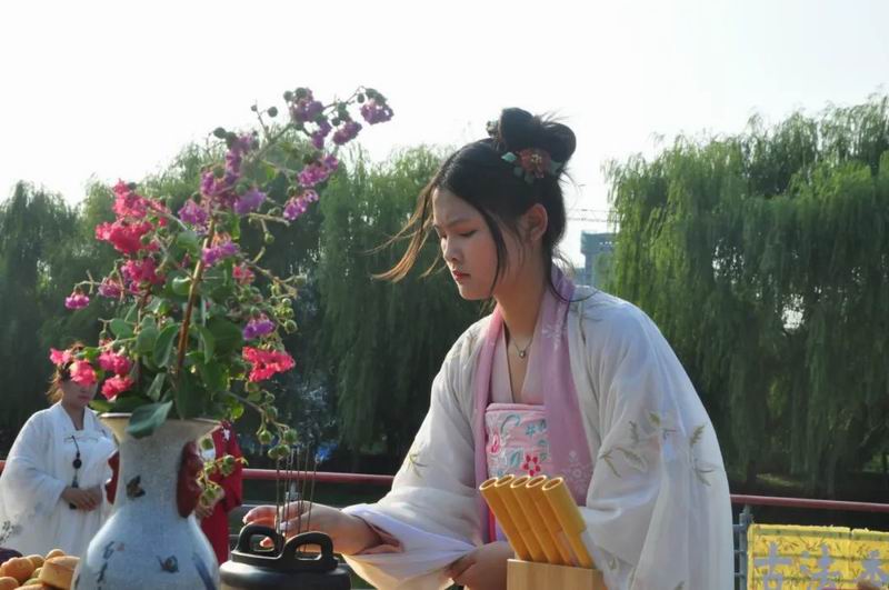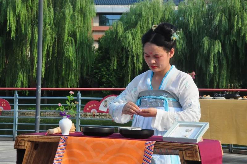 祭拜儀式結束后,傳統(tǒng)文化愛好者在古樸深沉、韻味悠長的古琴演奏中展示了制香、茶藝、古法造紙、香染等非遺文化和傳統(tǒng)技藝。