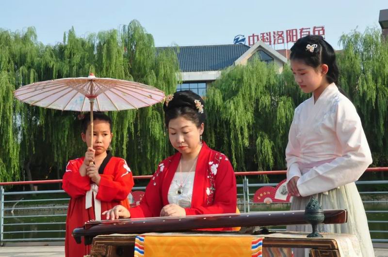 今天是8月4日,農(nóng)歷七月初七乞巧節(jié)。下午17時許,中國華僑國際文化交流基地炎黃科技園的湖心平臺上格外熱鬧,一場別開生面的乞巧節(jié)傳統(tǒng)文化大集活動正在這里舉行。